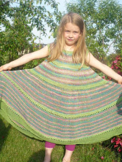 Robiłam na 4 te 2 nitki i ....się wyciągnęło....inna sprawa że całość jest dość ciężka bo to 3 motki bambusa i 4 bawełny poszło na to cacko. Sukienka jest dość mocno marszczona , obszerna i długa...no i kręci się jak parasol. Myślałam, że dziecko mi się na amen zakręci albo na jakimś rogu rozbije bo piruetom nie było końca:) czyli jak się można domyślić właścicielka zadowolona:)